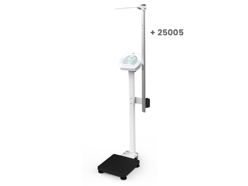 Bilance digitali professionali a colonna con base ampia e stabile in alluminio verniciato e pedana antiscivolo in metallo verniciato.