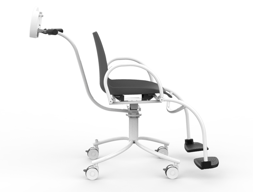 Poggiapiedi regolabili e braccioli reclinabili fino a 90° per facilitare l’accesso dei pazienti.