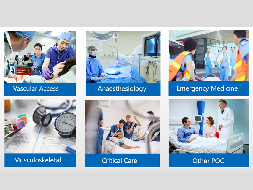 – SonoEye P2 Linear Array indicato per piccoli organi, apparato muscolo-scheletrico (MSK), nervi, polmoni, medicina d’emergenza (EM), sistema vascolare.