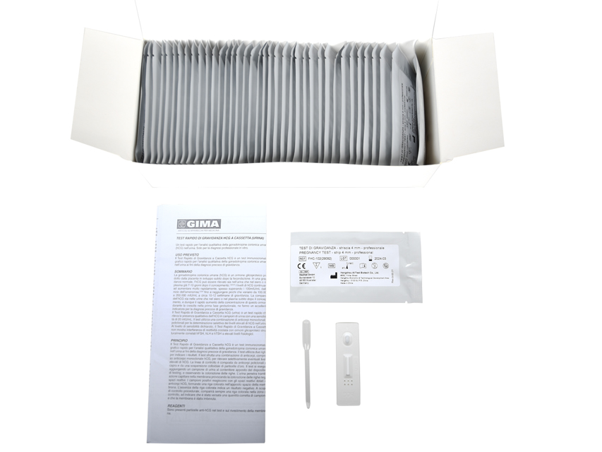 GIMA offre una gamma completa di test di gravidanza adatti sia per il mercato da banco (autodiagnosi) che per l’impiego professionale.